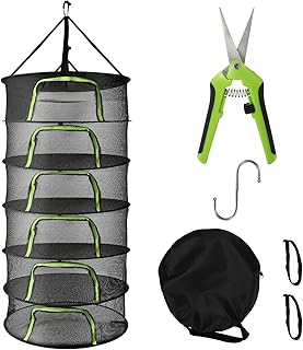 icyant Hängendes Kräuter-Trockennetz 6-lagiger Pflanzennetz-Trockenständer Für Kräuter, Blumen, Zwiebeln, Fische, faltbar, groß, rund, Kräuter-Trockenständer, Beschneiden von Ästen, Haken