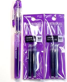 Platinum Komainu-Dou Füllfederhalter, feine Feder, Violett (PSQ-300#28) + Tintenpatronen SPN-100A#28 (Violett) Set (Japan Import)