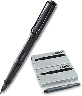 Lamy, "Safari", Füllfederhalter, feine Feder, weiß, Schwarz + 10 Patronen Blau, Füllfederhalter Safari