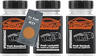 TRISTARcolor Autolack Lackstift Set für Seat W2Y Eclipse Orange Metallic Grundlack Basislack Klarlack je 50ml