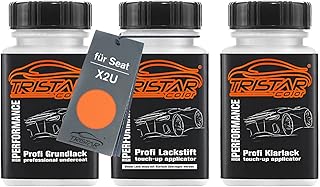 TRISTARcolor Autolack Lackstift Set für Seat X2U Samoa Orange Metallic Grundlack Basislack Klarlack je 50ml