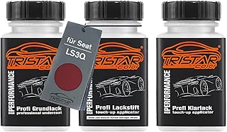 TRISTARcolor Autolack Lackstift Set für Seat LS3Q Rojo Montsant Metallic/Rojo Saigon Metallic Grundlack Basislack Klarlack je 50ml