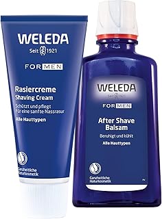 WELEDA FOR MEN Rasur Naturkosmetik Set - After Shave Balsam zur Pflege und Beruhigung der Haut nach der Rasur + Rasiercreme zum Schutz der Haut bei Nassrasieren