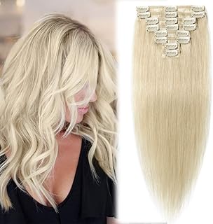 Clip in Extensions Echthaar Hellbraun #6 Haarverlängerung 8 Teile 18 Clips Remy Human Hair Extensions günstig Glatt Haarverdichtung 60 cm (80 g) #60 Weißblond