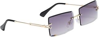 Retro Rechteck Sonnenbrillen für Frauen & Männer, Randlose Sonnenbrille,Gradient Kleine Quadrat Gläser Randlose Getönt Objektiv Brillen UV400