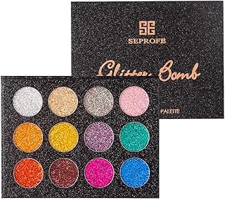SEPROFE Lidschatten-Palette Nude Make-up-Palette Smoky Eye Shimmer Matt Lidschatten Glitter Lidschatten Pallete Wasserdichte Kosmetik (Glitter Brank-12 Farben)