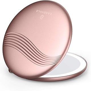 Easehold Taschenspiegel Zweiseitiger Schminkspiegel mit LED Licht, 1X / 3X Vergrößerung - Kompakt, Tragbarer, Make-up-Spiegel Kosmetikspiegel Beleuchtet für Kosmetik Unterwegs (Rotgold)
