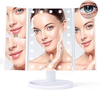 Schminkspiegel mit Licht, 10X/3X/2X/1X Schminkspiegel mit Beleuchtung, Faltbarer Kosmetikspiegel, Batteriebetrieben/USB Aufladen Dimmbarer Led Kosmetikspiegel, Klappspiegel Geschenke für Frauen